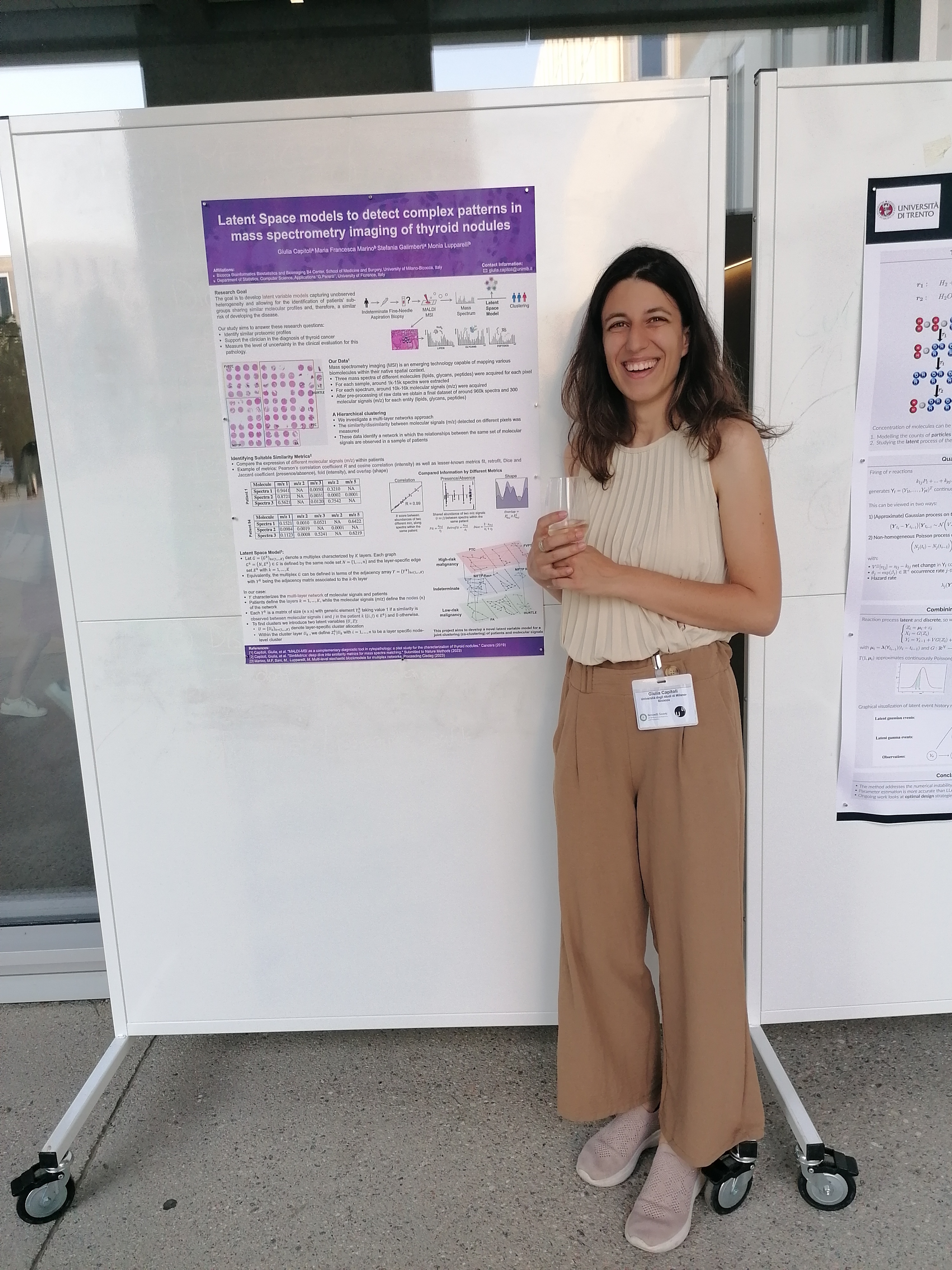 - Bernoulli workshop on Statistical Network Science on Sparse Inference for Complex Networks, Lugano, Switzerland, 26-27 June 2023. Poster: Latent Space models to detect complex patterns in mass spectrometry imaging of thyroid nodules.